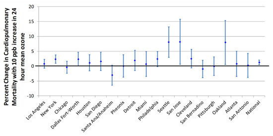 - Smith, R.L.; Xu, B.; Switzer, P. Reassessing the relationship between ozone and short-term mortality in U.S. urban communities. Inhal. Toxicol. 2009, 21, 37–61. [Google Scholar] [CrossRef] [PubMed]