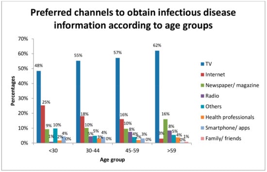 The preferred channels to obtain infectious disease information were from television (56%) and internet (16%). Meanwhile, smartphone/apps were one of the least popular sources. (Figure S2).