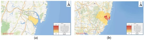 In the case of hydrogen chloride, the extent of the KORA damage predictions results in issuing chemical accident summaries to 2,555,183 people in the surrounding area. This means that not only information summaries are transmitted, but also that various social network infrastructures are required from the local governments (e.g., city hall or county offices), fire departments, police stations, and hospitals to support injured people. Conversely, when modeling with ALOHA or PHAST, support for 10,032 and 159,920 people is relatively low. The difference in the number of people is likely to lead to a larger distribution gap for industrial factories in areas with higher population density. Also, by showing different results for different modeling programs, it demonstrates that the modeling program cannot know exactly how many people will actually be affected by a chemical accident. However, in order to take the highest precautions against chemical accidents, many modeling program predictions are required and must be properly managed.