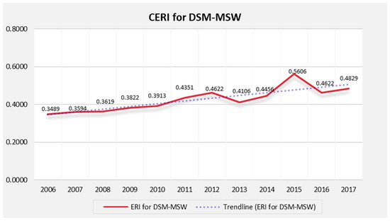 Finally, by using the standardized values of the actual data score and the evaluation score of indicator j, the ERI for the Dar es Salaam MSW was successfully calculated, as follows:
