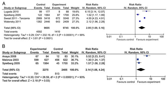 Meta-analysis (taken from Pottie et al., 2014 []). Forest plot of rapid HIV voluntary counselling and testing versus conventional care (A) on uptake of HIV testing and (B) on receipt of HIV results. Copyright received from BMJ. License Number 4403690523053.