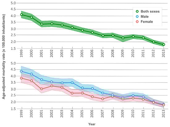 - World Health Organization, WHO. Mortality. Available online: http://apps.who.int/healthinfo/statistics/mortality/whodpms/ (accessed on 25 June 2018).