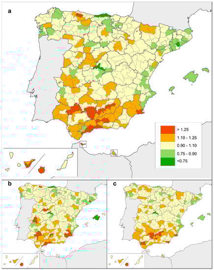 | La Vega | Seville | SW | 1.27 (1.15–1.39) | 1.29 (1.14–1.47) | 1.24 (1.07–1.42) |