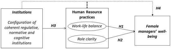 Considering the relationships that are discussed above, the configuration of institutions may have an indirect effect on female managers’ well-being by determining the use and implementation of HRPs regarding WLB and role clarity. These HRPs may be the main channel through which the institutional factors influence female managers’ well-being at work. Thus, it can be stated as a mediating hypothesis that: