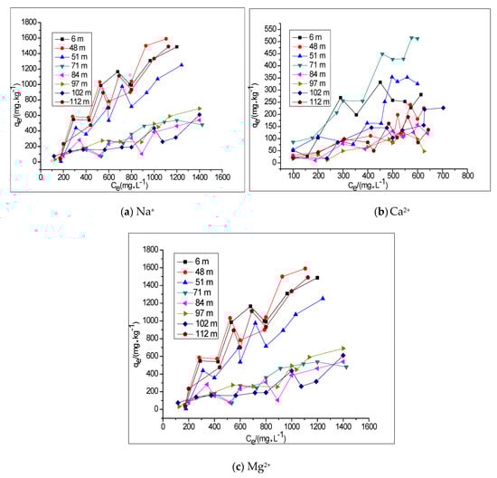 2+. It can also be seen that, as the concentration of the ions increases, the adsorption capacity continues to increase. This indicates a fast-paced process of change. The maximum adsorption capacity of clay for Na