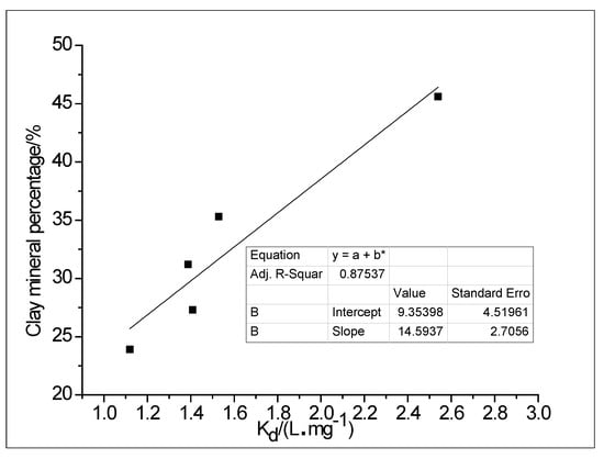 2+. The correlation between the linear distribution coefficient for the different depths of clay and the total content of clay minerals was as high as 0.8754 and the linear distribution coefficient increased with an increase in the clay mineral content (