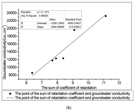 Figure 6b). This finding indicates that the larger the sum of the retardation coefficients, the higher the conductivity. Thus, we can observe that the blocking effect of clay has an important influence on the vertical migration of Na