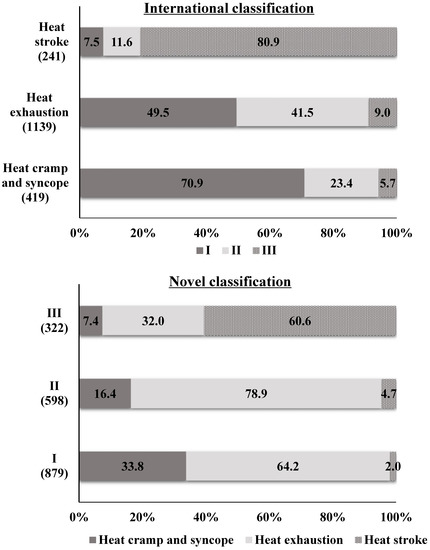3.3. Comparison of Heat-Related Illness Severity Diagnosed with the Novel Classification and the International Classification