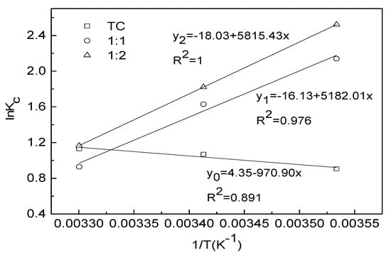 3.5. Adsorption Thermodynamic Parameters of TC in Different Complexation