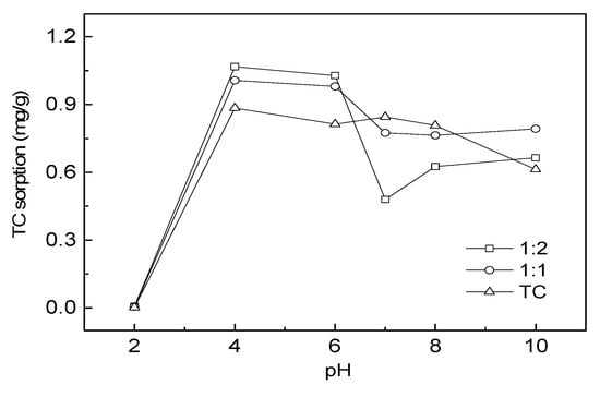 2.5.3. Adsorption of TC as Affected by pH and Cu(II)