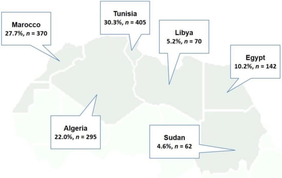 - Khyatti, M.; Trimbitas, R.-D.; Zouheir, Y.; Benani, A.; Messaoudi, M.-D.E.; Hemminki, K. Infectious diseases in North Africa and North African immigrants to Europe. Eur. J. Public Health 2014, 24, 47–56. [Google Scholar] [CrossRef] [PubMed]