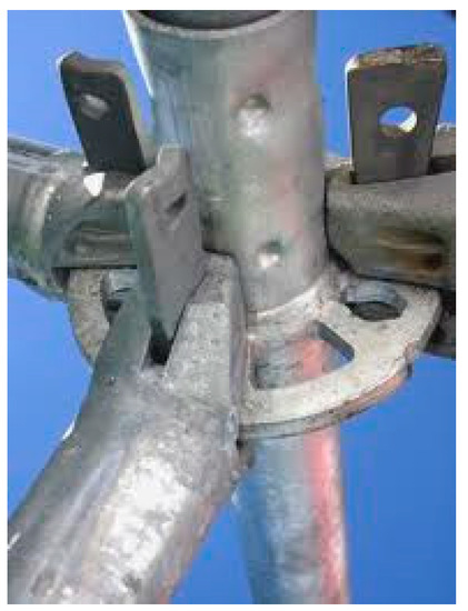 Figure 1. “Standardized scaffolding” or “system scaffolding” (Modular frame scaffolding) [10]. - Multidirectional scaffolding, which can be seen in Figure 2. This scaffolding has various elements separate from each other. This configuration permits different angles, as can be seen in Figure 3.