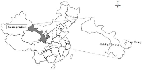 The geolocation of Huining County and Huan County in Gansu Province, China.