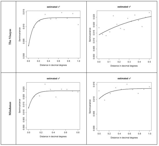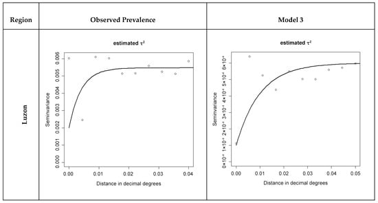 In the Visayas, 73.8% of the variance in functional illiteracy was spatially structured with an average cluster size of 30.7 km (Table 6). After adjusting for the covariates, residual spatial dependency of functional illiteracy was no longer visible in that the semivariograms of all three models showed a spatial trend in the prevalence of functional illiteracy but no clustering. Our findings demonstrate spatial dependency only in the raw prevalence of functional illiteracy (Figure 3).