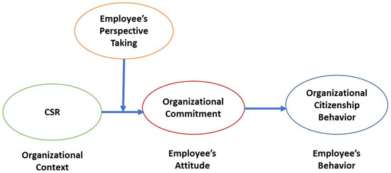 Also, we investigate the effect of an employee’s perspective taking ability as a moderator on the CSR-OC link. Perspective taking is defined as a cognitive procedure in which a person tries to understand others’ thoughts, intentions, preferences, and values from the viewpoint of those [33]. Employees’ perspective taking is the beginning of the interpretation but also critically affects the processes of the interpretation [33,34]. Thus, it is likely to affect sense-making processes on their work experiences in an organization. In a similar vein, we argue that they actively infer and interpret the purpose and authentic intention of their organization’s CSR practices. This interpretation may substantially influence the relationship between CSR and OC.
