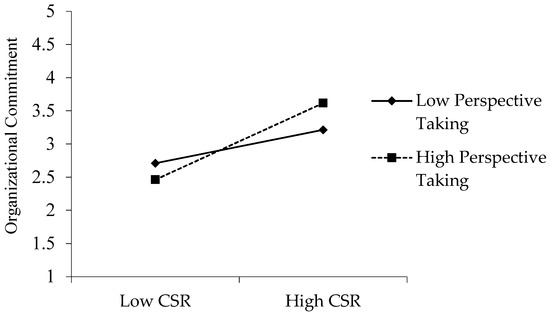 Lastly, by delving into moderating effect of employee’s perspective taking ability in the CSR-OC link, we revealed the contextual variable which moderate the influence of CSR on employees’ attitudes (i.e., OC). We believe this approach is reasonable since employees’ sense-making processes on their work experiences are critical for them in interpreting experiences about CSR in an organization [47]. Among a variety of factors, we focus on employees’ perspective taking ability which functions as an important contextual variable that positively moderates the CSR-OC link.