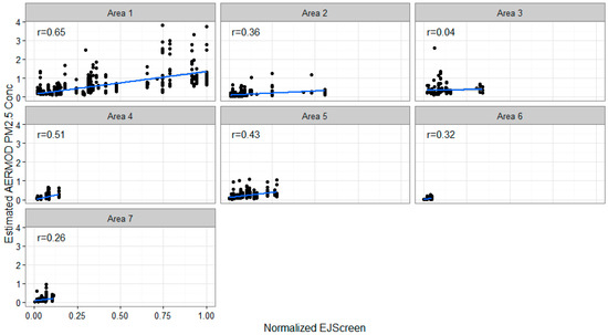 Particulate matter (PM2.5) and normalized EJScreen index values.