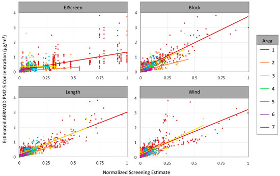 Supplementary Materials are available online at http://www.mdpi.com/1660-4601/16/1/3/s1. The Supplemental Materials provide data on the region so that information within study area can be contextualized. The SM also provides correlations of the four pollutant estimates and detailed comparisons of the Length and Wind screening estimates to the modeled PM2.5 concentrations.