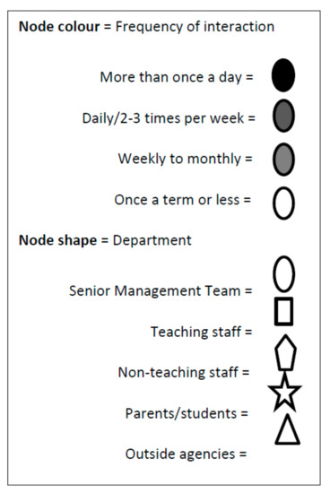 The following are available online at https://www.mdpi.com/1660-4601/16/10/1694/s1, Table S1: Job role key for Highbridge School net-maps, Table S2: Job role key for Oakwood School net-maps, Table S3: Job role key for Woodlands School net-map, Table S4: Job role key for Greenfield School net-map.