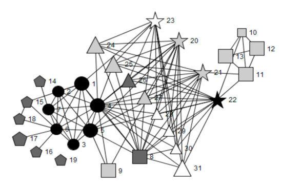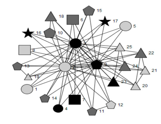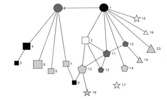 - Wasserman, S.; Faust, K. Social Network Analysis: Methods and Applications; Cambridge University Press: Cambridge, UK, 1994. [Google Scholar]