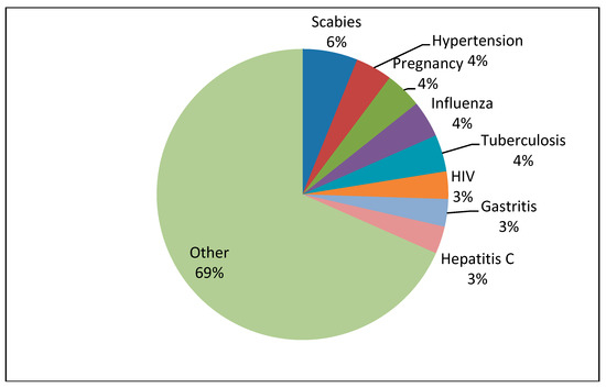 Late in 2014, the former US army barracks called “Patrick Henry Village” (PHV) in Heidelberg–Kirchheim, Germany, were converted into an emergency winter accommodation for refugees. In September 2015, the PHV became an official state registration and reception center for forced migrants in the German Federal state of Baden–Württemberg. On an area covering over 90 hectares, this center provides shelter for approximately 6000 asylum seekers. Here, refugees can seek medical help in a provisional medical outpatient clinic for general medicine, pediatrics, gynecology, and psychosocial medicine [2,29]. The clinic is run by physicians registered in Heidelberg and physicians from the University Hospital Heidelberg. In 2017, Manok et al. [2] investigated the PHV sheltered refugees’ sociodemographic data in the context of the PHV’s psychosocial outpatient clinic [2]. The average age of outpatients was 31.18 years (±10.41 years). A total of 35.0% of the patients were female and 65.0% male. Most refugees originally came from Sub-Saharan Africa (33.1%, especially Gambia and Nigeria), Southeast European countries (33.1%, mainly the Balkans, Turkey, and the Caucasus), the Middle East (23.7%, especially Afghanistan and Iraq), and Maghreb countries (9.1%). The most frequently spoken languages were Arabic (10.1%), Serbo-Croatian (9.1%), and Persian (7.6%). The most frequently cited religions were Islam (39.7%) and Christianity (13.6%) [2].