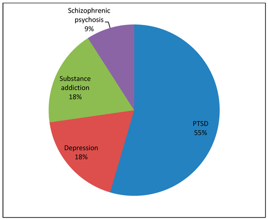 Results from the reflective diaries: showing the proportion of different diagnoses which were made in the outpatient clinic for psychosocial medicine.
