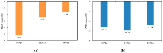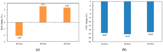 Changes of the mean annual (a) maize yield and (b) CWC in the Ganzhou area under the three RCP scenarios.
