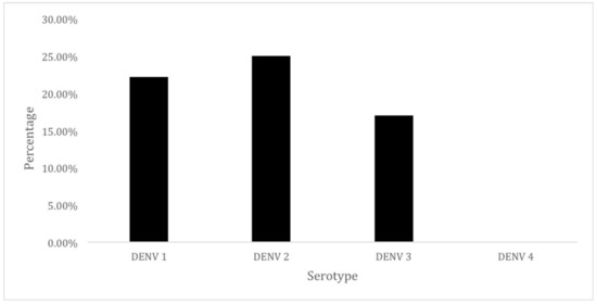 The distribution of DENV serotypes detected in infected female mosquitoes.