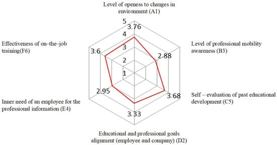 - C5—self-evaluation of past educational development—N = 591, i.e., 78.2% of all 756 surveyed nurses achieved these average results.