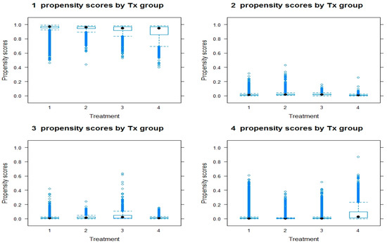 - McCaffrey, D.F.; Griffin, B.A.; Almirall, D.; Slaughter, M.E.; Ramchand, R.; Burgette, L.F. A tutorial on propensity score estimation for multiple treatments using generalized boosted models. Stat. Med. 2013, 32, 3388–3414. [Google Scholar] [CrossRef]