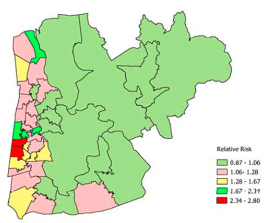 - Moraga, P. Small Area Disease Risk Estimation and Visualization Using R. R J. 2018, 10, 495–506. [Google Scholar] [CrossRef]