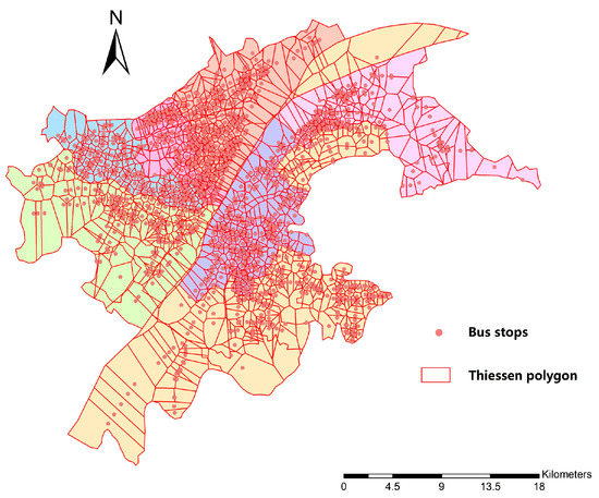 - Wang, S.; Sun, L.; Rong, J.; Yang, Z. Transit traffic analysis zone delineating method based on thiessen polygon. Sustainability 2014, 6, 1821–1832. [Google Scholar] [CrossRef]