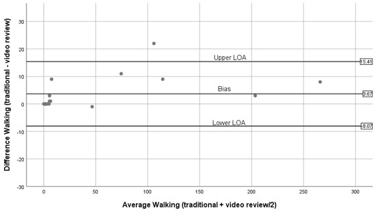 Bland–Altman plots for walking (traditional BWM vs. expert review of BWM videos).