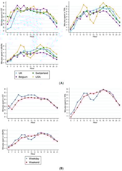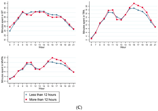 3.3. Patterns of Sedentary Time and Physical Activity across the Day