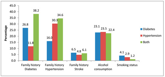 Current smokers constituted 2.8% of the respondents, of which 77.4% reported smoking daily. About 23.4% of the respondents reported having ever consumed alcohol in their lifetime; of these, 19.5% had consumed alcohol in the 12 months prior to the interview. Almost a third of the participants (28.7%) had a family history of hypertension, 18.0% a family history of diabetes, while 5.3% reported a family history of stroke. The majority of the respondents (89.7 %) were on allopathic treatment as indicated in Table 2. Only 1% reported being exclusively on traditional medicines, while approximately 9% were not on any form of treatment for their ailment at the time of the interview.