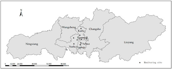 Figure 1. Changsha municipal administrative division and monitoring site.