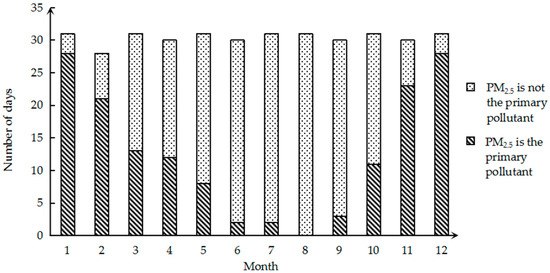 Figure 3. The number of days PM2.5 was the primary pollution factor per month in 2017.