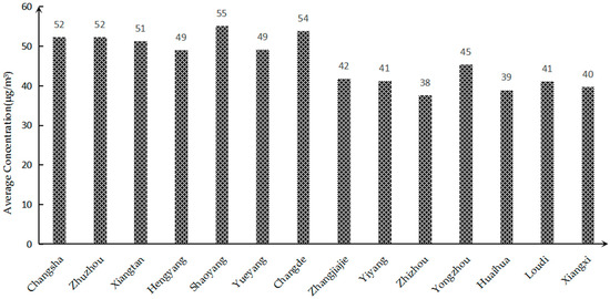 Figure 6. Comparison of PM2.5 Concentrations in Cities of Hunan Province in 2017.