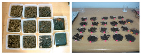 (left) Pre-composting phase for different POME-PPF mixtures (0%, 10%, 20%, 30%, …, 100%) (n = 3 for each treatment). (right) Vermicomposting phase for different percentages of POME-PPF mixtures in Petri dishes (n = 3 for each treatment).