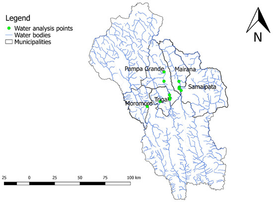 Water sampling for the analyses were carried out in the municipalities of Moro Moro, Pampa Grande, Trigal, Mairana and Samaipata. The list of the water points sampled is shown in Table 9, while locations are shown in Figure 3.