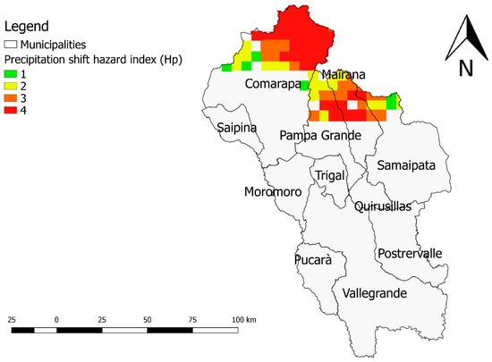 Precipitation shift hazard (Hp) values, Hp varies from 1 (lower) to 4 (higher).