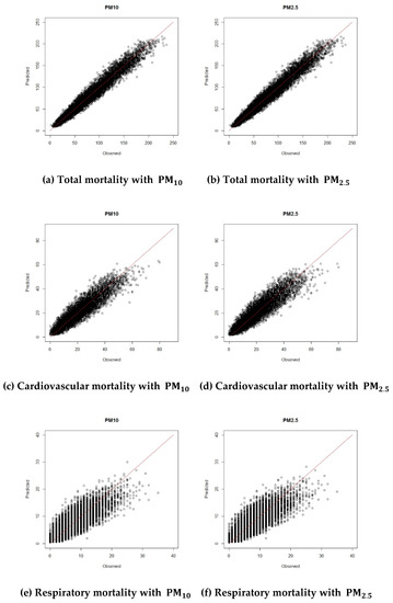 The following are available online at https://www.mdpi.com/1660-4601/16/12/2111/s1, Figure S1: Plots of Pearson residuals versus the forecasted values for different types of mortality and air pollutants.