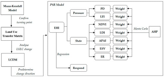 where represents the number of indicators, means the value of a specific indicator, and is the weight of the i-th indicator. A greater index value always implies better ecosystem health.
