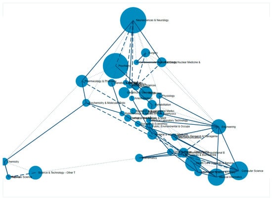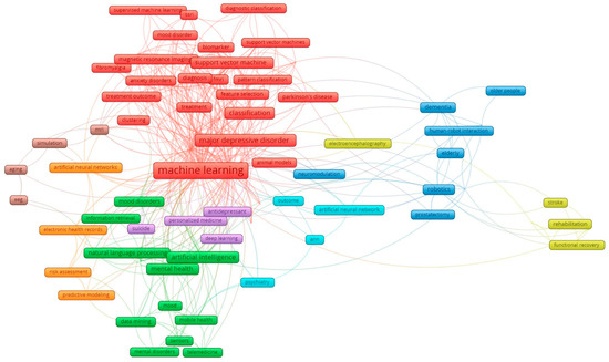 Analyses of keywords and abstract content pointed out that machine learning is among the cutting-edge and most widespread branch of AI. Machine learning provides technological devices with the ability to automatically analyze and “learn” from previous data and, thus, make accurate decisions on new datasets without explicit algorithms [41]. This subfield has been applied in diagnosing a wide range of mental disorders, such as predicting treatment outcome in depression [42], classifying dyslexia structural neuro-imaging [43], and identifying incipient dementia [44]. Algorithms of machine learning offer dynamic conceptual and analytic frameworks to integrate multiple data types and sources to predict therapeutic outcomes of depression [45]. Additionally, various biomedical techniques and applications were found to be involved in multiple research fields and were strongly associated with psychiatry as well as computer sciences and informatics. This incorporation suggests the development of a multidisciplinary AI approach for further research and findings in neuropsychiatric disorders and treatments (Figure 5).