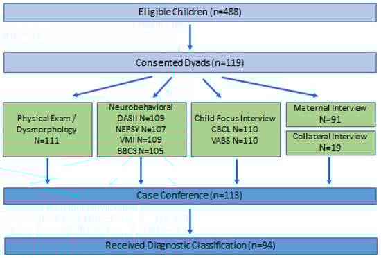 This study was designed as an ancillary special population study under the umbrella of a larger parent study, the National Institutes of Health (NIH)—National Institute on Alcohol Abuse and Alcoholism (NIAAA)-funded Collaboration on FASD Prevalence (CoFASP) study which estimated the regional prevalence of FASD in the U.S. [3]. The parent study used a cross-sectional design to sample children 5–7 years of age in regular first grade classrooms over two academic years in four regional communities in the U.S. Children were selected for the parent study through active case ascertainment in public and private elementary schools. Participating children and parents/guardians underwent multi-tiered evaluations, in most cases including a screening tier for growth deficiency, followed by a full evaluation for the key domains required for a classification of FASD. These included growth measurements, a dysmorphological evaluation for physical features of FASD, a neurobehavioral testing battery and a maternal or collateral interview regarding alcohol consumption in the index pregnancy. Details regarding the sampling strategies and methods for the parent study are described elsewhere [3].