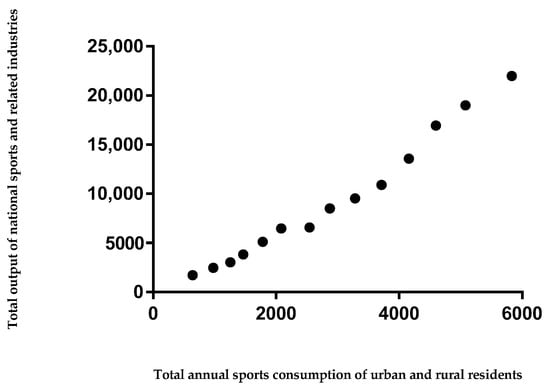According to the Statistical Bulletin of China’s Sports and related Industries published by the State Sports General Administration and the report on the Development of China’s Sports Industry, we obtained data on the Total Output of National Sports and Related Industries, the Total Output of Manufacturing Industry of Sport Goods and Related Products and the Total Output of Sport Services during the period 2000–2017, and the Total Output of National Sports and Related Industries data in 2008 is from the National Bureau of Statistics (NBS) the second National Economic Census of the main data Bulletin [27]. Based on the Survey report on the current situation of National Mass Sports published by the State Sports General Administration in 2000, 2007 and 2014, we adopted the method of calculating the Total Sports Consumption of Urban and Rural Residents in the 2010 China Leisure Development report [28] published by the Chinese Academy of Social Sciences. We calculated the Total Sport Consumption of Urban and Rural Residents in 2000–2017 and the Consumption of Sport Goods and Sport Services in 2000, 2007 and 2014. The data used to estimate the average annual growth rate of the Per Capita Disposable Income of Urban Residents was all derived from the Statistical Yearbook of the National Bureau of Statistics.