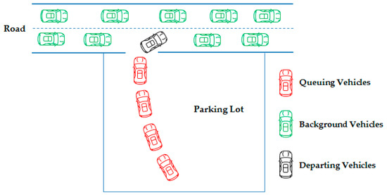 However, for a parking lot, the service time actually means the period from the time a vehicle arrives at the front of the queue until it merges into the traffic flow on the road connecting the exit r, a period determined by the background traffic flow. The derivation process of is described in detail as follows.