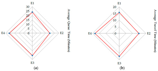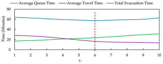 Hence, the background traffic flows in the network not only affect vehicles’ queuing time in the parking lot but also determine vehicles’ optimal evacuation route choice. In view of this, dynamic background traffic flows should be considered for the optimal evacuation strategy of the parking lot.