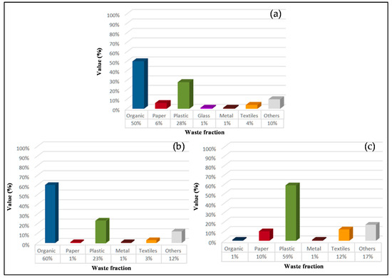 Given the situation of poverty in the country and the purchasing power of students, the possibility of implementing circular economy indicators for glass and metal fractions was discarded, since they are almost non-existent (Figure 4a).