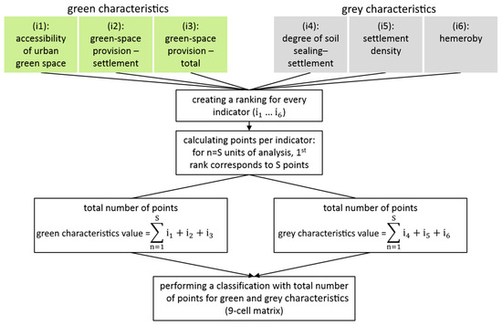 Scheme of the rank-based classification for characterising green space provision of cities using a combined indicator (modified according to Richter et al. [59]).